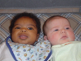 Charles had his first play date today with baby Alexandra Lewis (DOB 7/15/08) while mommy and William spent some time with Laura Lewis.